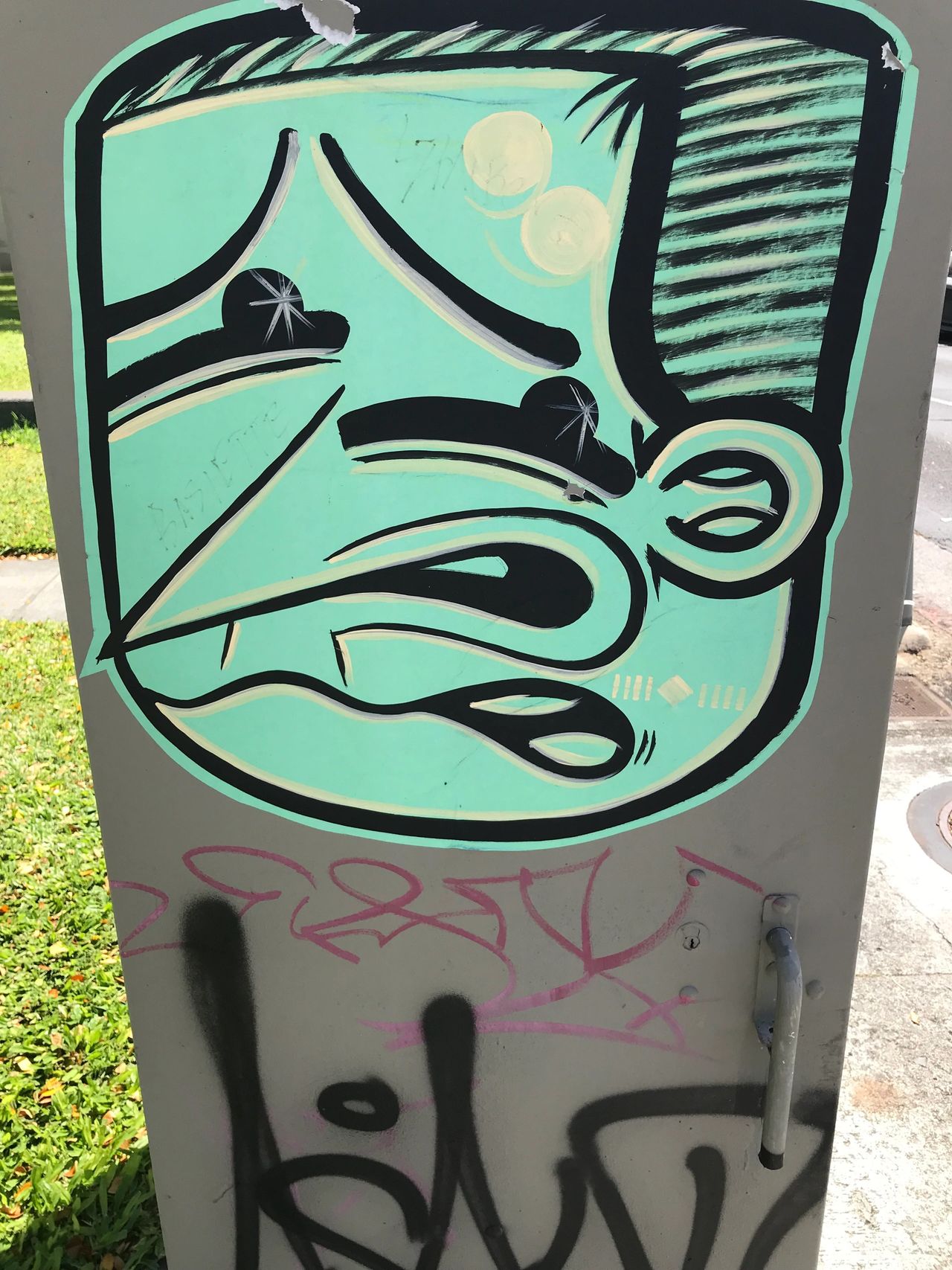 I have event marker buttons to record what happens on the side of the bus, where most tags occur. I also now have 9 active cameras covering all interior and exterior sides of the bus. Usually, as I pull away from the zone, I see a tagger hurrying to scribble before the bus moves away. They wear a black hoodie pulled over their head to make facial features hard to detect. I never know if the image ever gets to an authority able to catch the tagger, unless I get a radio call to pull over and wait for a police car to identify the person in the back seat. I usually continue on my way without any confirmation resources are to be used to catch the tagger or taggers.