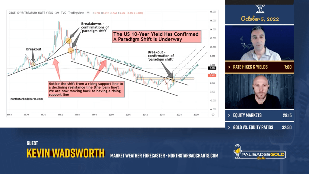 While things like inflation seem to be unpredictable and labeled as a trailing indicator, one thing everyone seems to know off the bat–is that we’re all going into debt. Covid stimulus checks and staying home to avoid a commute to the office, saved us a lot of money. But two years later, what with the housing and rent situations, along with grocery prices and utility bills–things seeming to be spiraling out of control. Nothing paints this picture better as this above graph in Tom Brodrovick’s YouTube host channel on Palisades Gold Radio with guest Kevin Wadsworth.