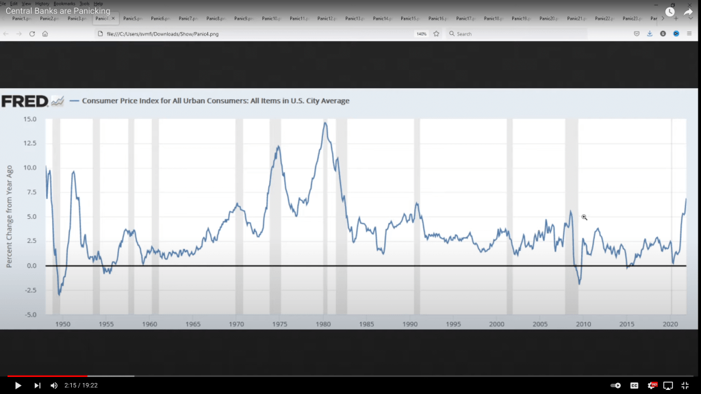 Indeed, studying the charts on popular YouTube channels of Gold and Finance, a shocking picture emerges not really shown on major media outlets. Here’s a FRED graph of Urban CPI: