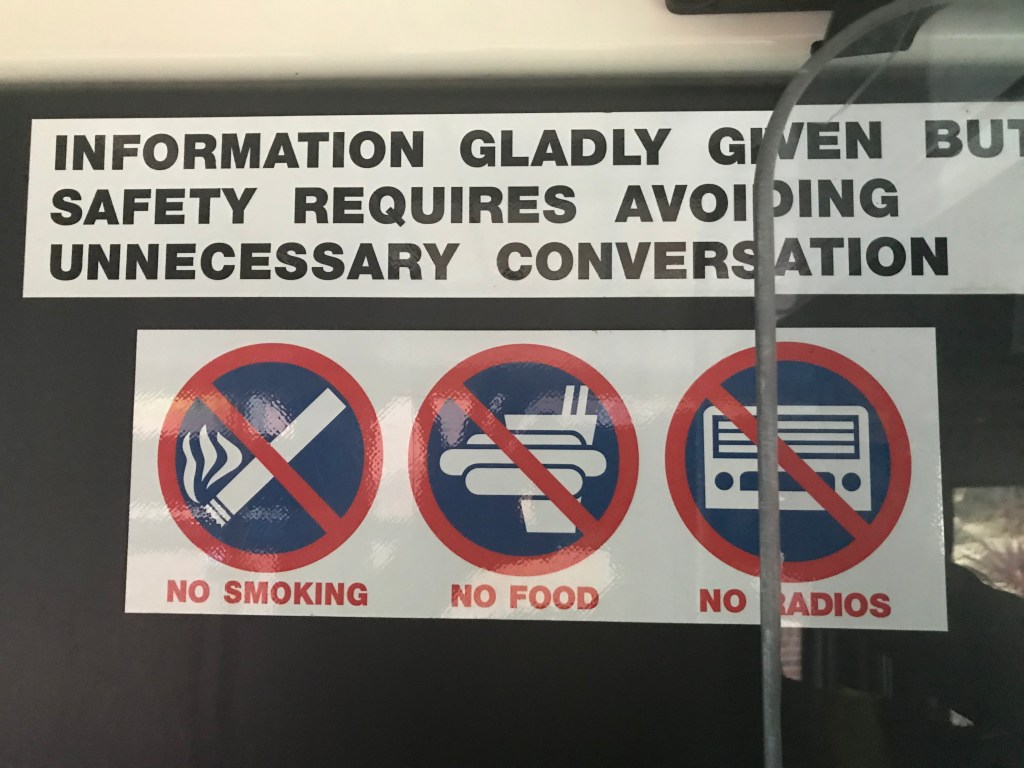 The street inspectors don’t understand that when I put up “Garage,” it does not mean I am out of service. The street ops person does not realize I am trying to make my job easier by not confusing passengers, and I am trying to telegraph I am not a regular line coach. We do have the sign, “Ask Driver,” but on the old coaches, the line sign still stays up.