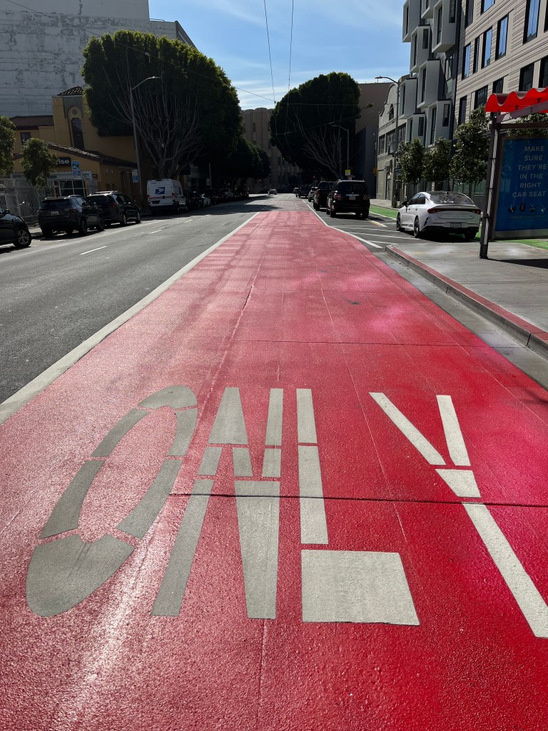 And this is true of the crunch zones between the 49 Van Ness and the 14 Mission. Especially if you are in a wheelchair, carrying a large cumbersome object, or using a grocery cart. Also, if you have difficulty in getting up the stairs or need a seat right by the door, oddly enough, the best offense is the defense of traveling beyond the closest stop to your destination. This means backtracking to board where the bus is less crowded. Many riders have learned this about getting on a train under Market Street.