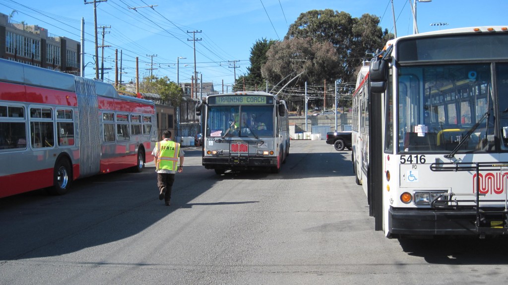 The same goes for Bryant outbound to 16th outbound and South Van Ness inbound to 16th outbound. But those two latter sets on the street are very rarely used, so it is of little import. The switch on track five is at a place where coaches pull out every day. We read the mantra from our superintendent that we are to pull out on time. A bulletin is put in our paddles as a reminder of our duties. We are also never to leave the coach once pre-op has started, but we’re to call the OCC for assistance. The only problem is the Central Control Kingdom did not read our bulletin about calling for help with the problem switch. The Shop Kingdom did, and does beat to a drummer close to home. It is made aware of a bulletin we receive, and because of our many interactions throughout the day via the yard starter, we end up on a page very close to (or at least within) the same chapter of the same book. But getting the other kingdoms on the same page may never happen with Muni.