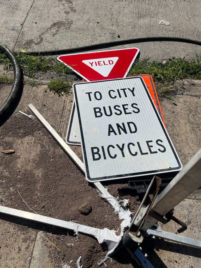 This one got me last week. I let them have it with the tradition of Foghorn Leghorn, because my PA exterior loudspeaker wasn’t working that day. But all my sarcastic skill over the bullhorn would have been moot, as the car was unattended. The car was in a bus stop marked with construction sawhorses, the owner finally returning with take out after a few minutes of waiting. Truth be told, his flashers were on, and I knew it wouldn’t be too long a delay for him to return. I got him with “photon torpedoes” my dash camera, as I took a picture of his plate and bumper up against the temporary bus stop sign.