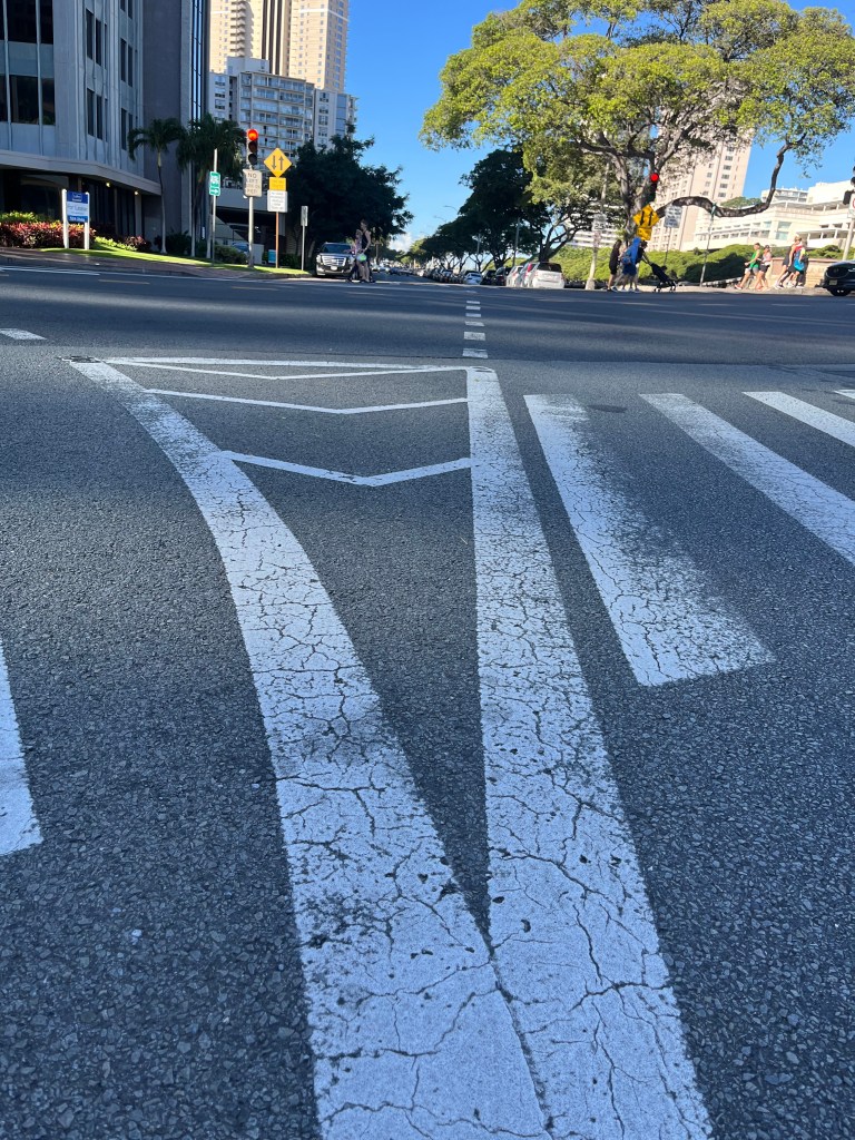 The compulsive horn disorder manifests daily at this crosswalk. A following car, not able to see a crossing pedestrian on the cross street or side street, honks loudly and clearly because they can’t see why the car in front of them is not moving. It’s because the far side crosswalk is occupied. Please, dear motorist, accept the path experienced city drivers follow: a space of time of five to seven seconds is needed before the vehicle in front of you moves. This precious pause saves lives. Crosswalk lives matter.