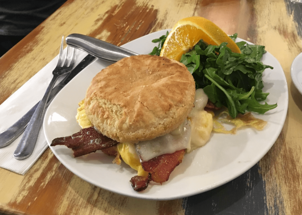 It was a brisk mid-October morning in Provincetown, MA and we were hungry. Right in the center of town on Commercial Street we spotted Heaven’s Gate–and the bacon, egg, and cheese sandwich on a wheat English muffin, with a perfectly hot cup of Joe–had to be the most delicious breakfast I’ve ever found. The cold air and the warm bacon egg and cheese, with the correctly toasted muffin, created a home run! And this was the morning after!