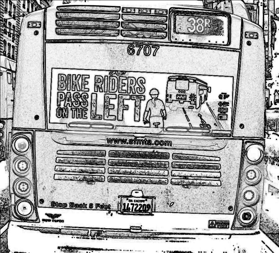 One great billboard on the back of some buses is the illustration showing a bus turned-in at a bus stop with a cyclist behind the bus moving to the left to pass the bus. What a great illustration for a cyclist to see traveling behind a stopped city bus! This message has helped countless times avoiding sideswipe right from a bike getting caught behind or at our rear door as passengers alight. One of the keys to effective change is to have the message right where it needs to be, and this safety ad is in first place!