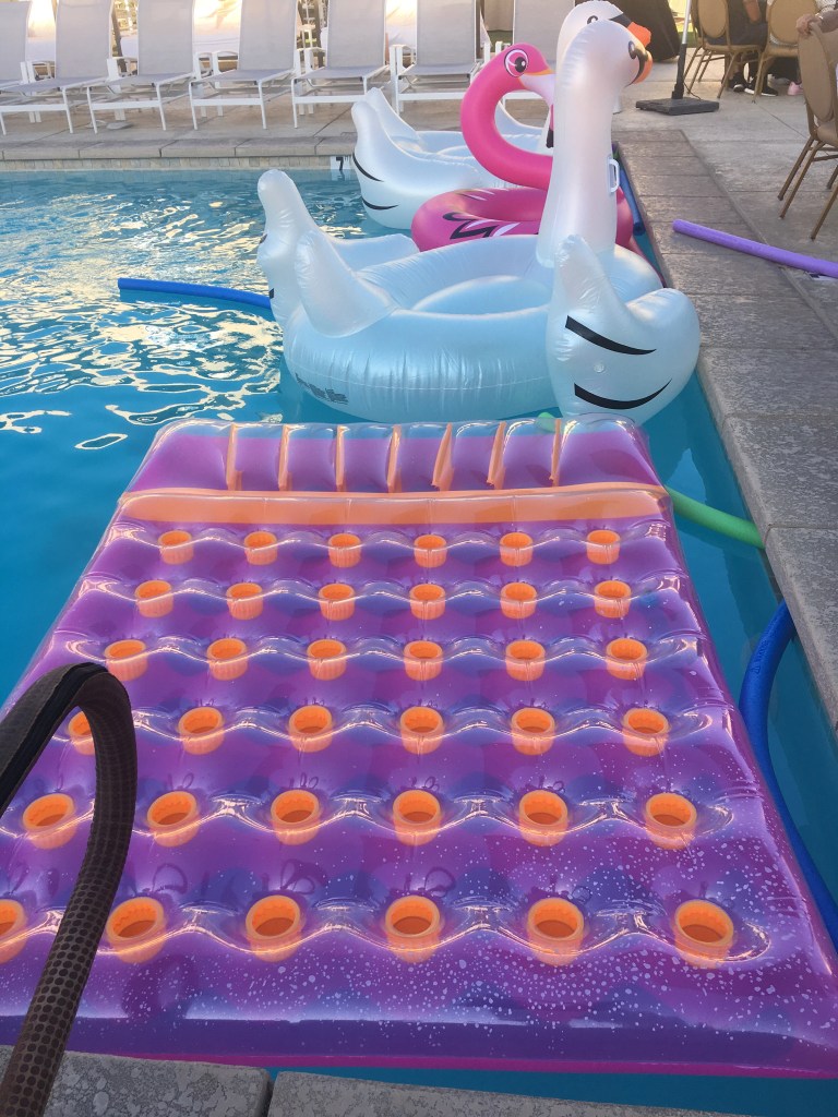 I love the patterns of light on water, but more importantly–the refractions on the bottom of the pool from the sun. I also like cutting through completely calm water and making a wake. Hockney eat your heart out! If I don’t want to work at swimming–floating on a raft is relaxation with a capital R!